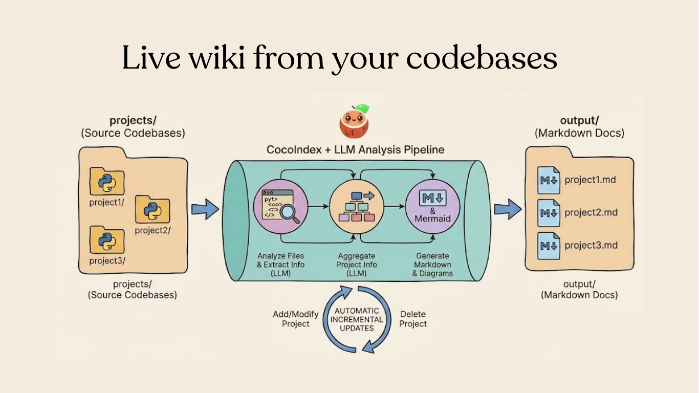 CocoIndex now officially supports custom sources — giving you the power to read data from any system you want. You can use CocoIndex for anything, and enjoy the robust incremental computing to build fresh knowledge for AI.